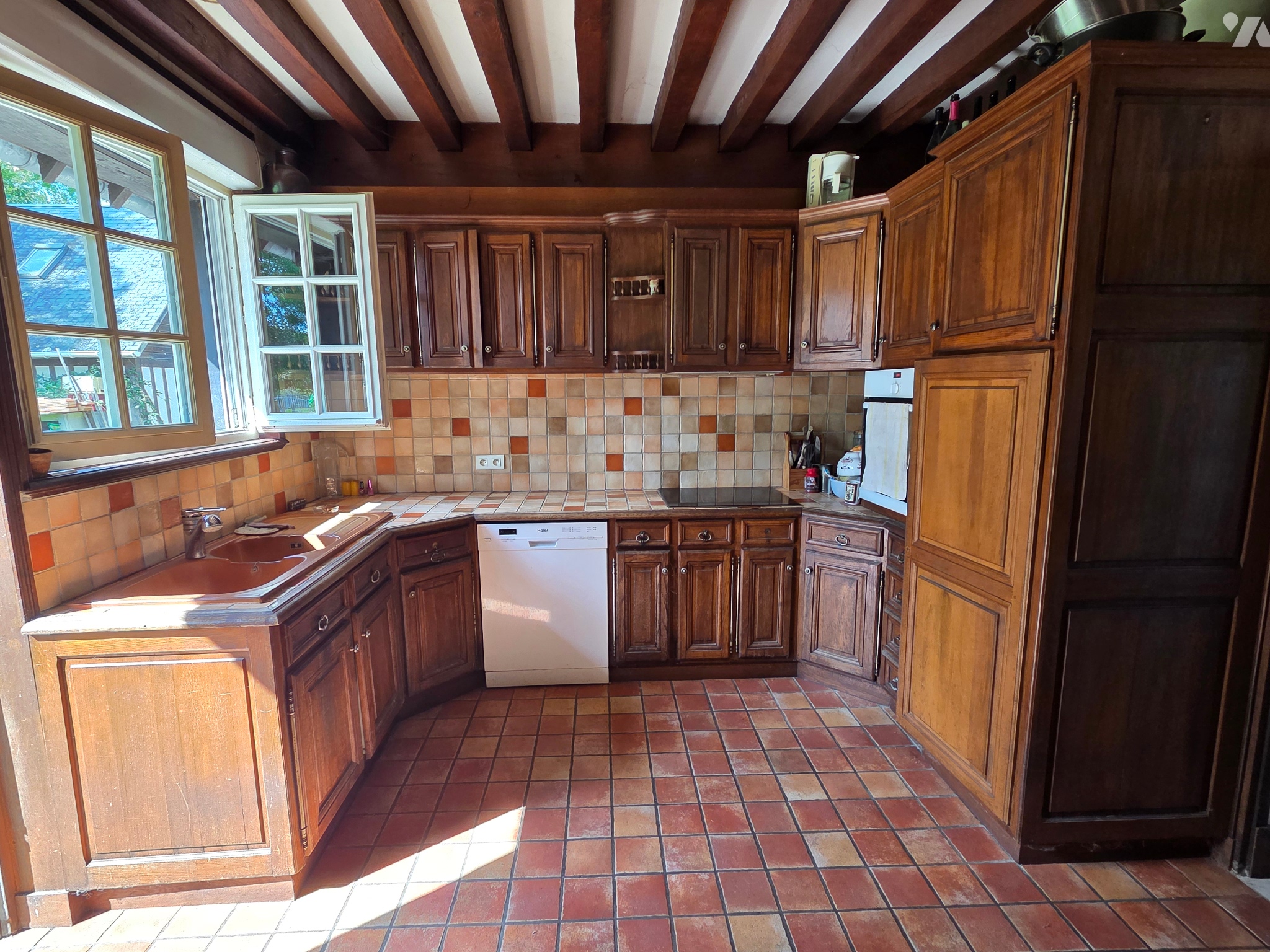 LA MAILLERAYE SUR SEINE, longère normande en colombages d'environ 221m² sur un terrain d'environ 3550m² avec vue sur la seine, viable de plain pied et comprenant : Entrée dans séjour/salon avec cheminée foyer ouvert, cuisine aménagée et équipée, un dégagement desservant deux chambres, une salle de bains avec une douche et un W.C. Au premier étage : grande pièce palière, trois chambres, un débarras, une salle de bains , une salle de douches et un W.C. Chauffage au fuel. TAE. Garage avec un grenier en mezzanine. maison entièrement réhabilité en 2003. Beaux volumes. A voir au plus vite, coup de cœur assuré !
