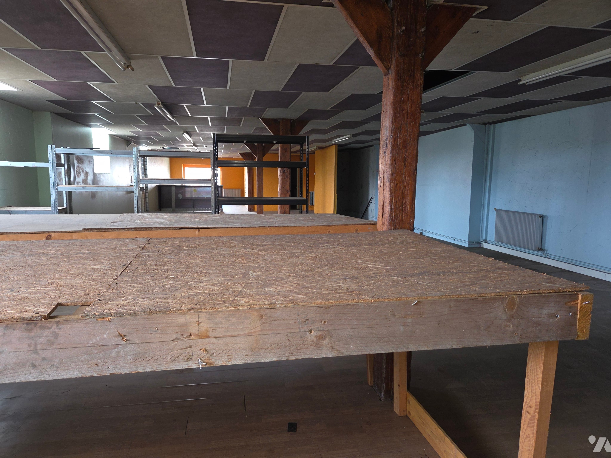 2 lots se situent en rez de chaussée et disposent d'une porte sectionnelle grande hauteur, permettant l'accès à des camionnettes. Un terrain avec de nombreuses places de parking.